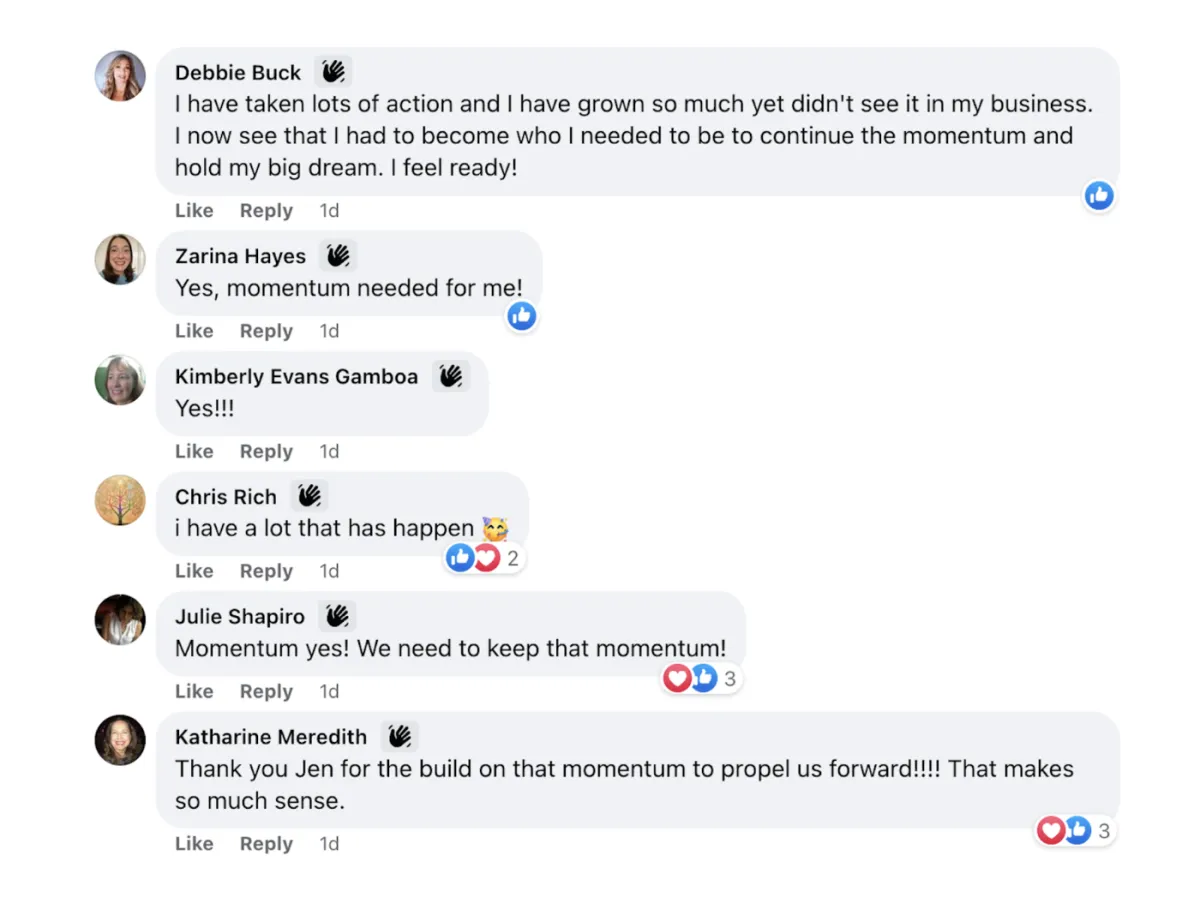 Of course! Your feedback is always welcome. Please share what you want to see inside of Momentum with our team at [email protected]. We also love to hear your favorite aspects of the program so that we know what more we can deliver to make it a HUGE success for you!